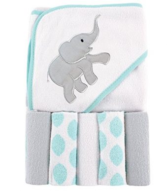 Luvable Friends Unisex Baby Hooded Towel with Five Washcloths, Ikat Elephant, One Size
